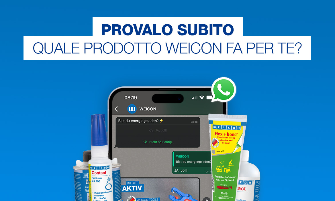 Ma perché così tanti clienti si fidano del nostro marchio? È semplice: dietro il nome WEICON non c'è solo una gamma di prodotti di alta qualità, ma anche un servizio eccellente con un grande know-how! Aiutiamo i nostri clienti a scegliere il prodotto giusto e forniamo loro le nostre conoscenze specialistiche in qualsiasi momento, ovunque, con consigli e applicazioni in loco. Di persona, a telefono, in videoconferenza o in una chat WhatsApp, insieme troveremo la soluzione applicativa perfetta!