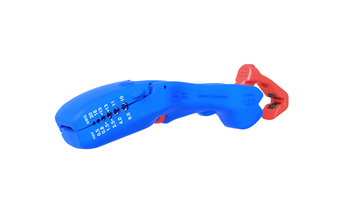 Strippaggio e sguainatura di tutti i comuni cavi tondi da 8 - 13 mm ø, lama a gancio e livelli di spelatura integrati. Taglio longitudinale semplice e rapido grazie al passaggio ottimale dei cavi nell'alloggiamento. Livelli di spelatura integrati per tutti i conduttori flessibili e rigidi con sezioni di 0,5 mm², 0,75 mm², 1,5 mm², 2,5 mm², 4,0 mm² e 6,0 mm². Lama a gancio retrattile, bloccabile in qualsiasi posizione e facile da sostituire.