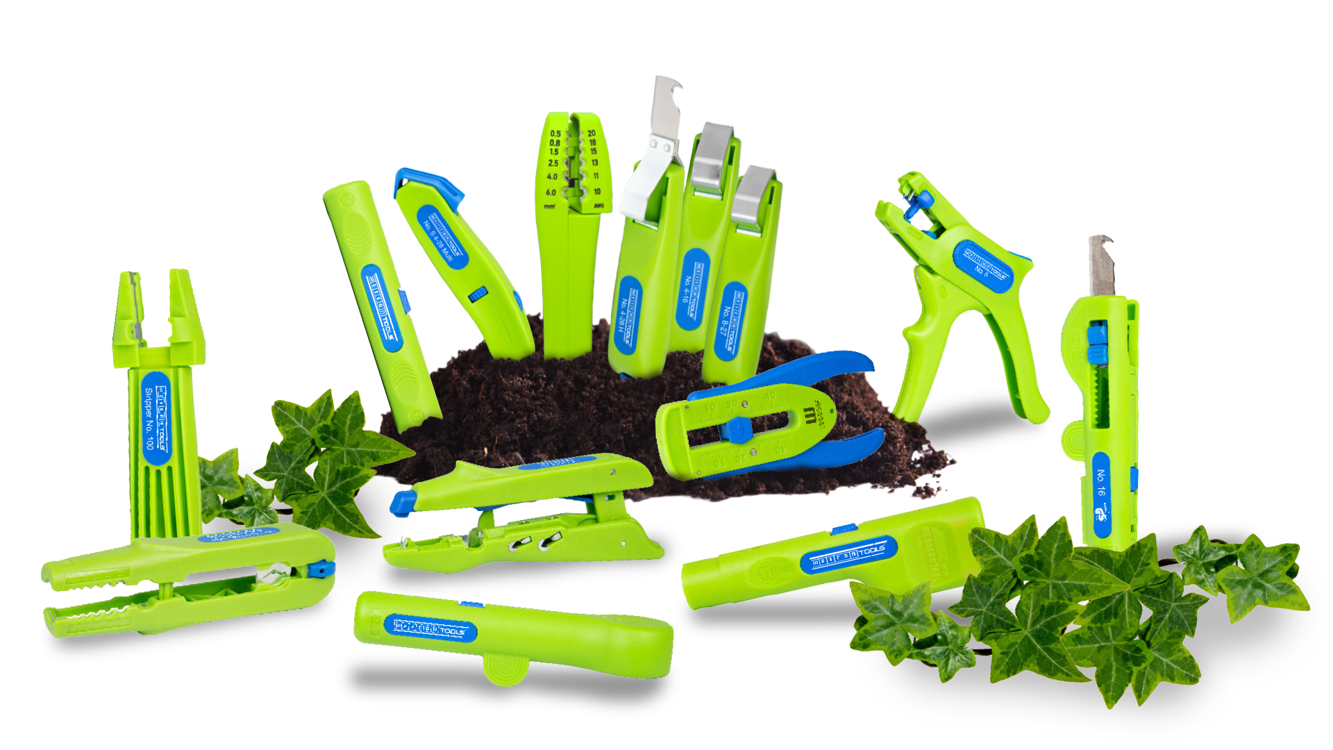 WEICON TOOLS Green Line – i primi utensili di spelatura al mondo realizzati con materie prime rinnovabili e riciclabili fino al 97%. La Green Line comprende un totale di quattordici utensili diversi, che vanno dalle spelacavi e spelafili agli utensili di spelatura multifunzionali.