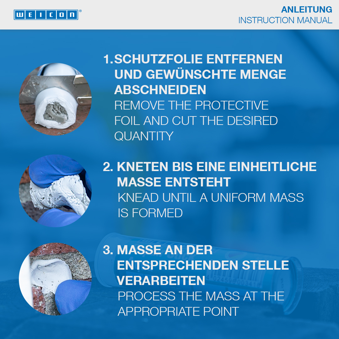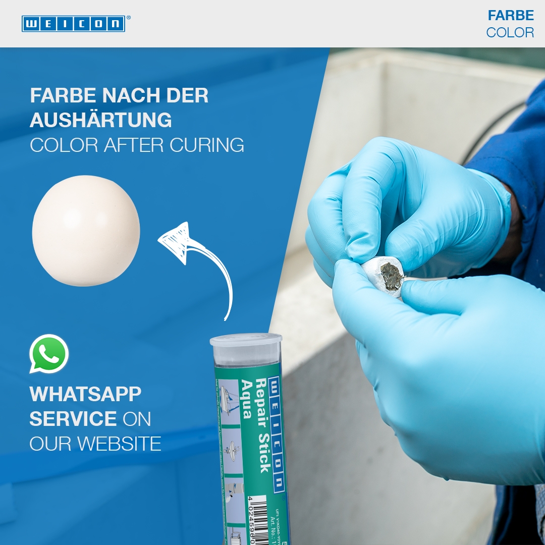 Ideale per riparazioni veloci su superfici umide o bagnate e applicazioni sott’acqua. Utilizzabile per riparare e sigillare crepe, buchi, perdite e permeabilità su serbatoi di benzina e acqua, termosifoni, quadri elettrici, impianti sanitari e piscine. WEICON Barretta acqua trova utilizzo nella costruzione di impianti sanitari e di riscaldamento, settore elettrico, marittimo e in tanti altri settori industriali.