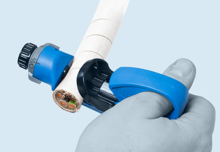 Taglio circolare, longitudinale e a spirale per la sguainatura di cavi morbidi e duri - Range di lavoro 4,5 - 29 mm, profondità di taglio 0 - 3 mm - Profondità della lama regolabile comodamente da 0 - 3 mm con una manopola rotante bloccabile - Le diverse direzioni di taglio per tagli circolari, a spirale e longitudinali possono essere impostate in modo sicuro utilizzando la rispettiva posizione di blocco con una leva di comando - Affilatura speciale della lama per la rimozione pulita del rivestimento esterno