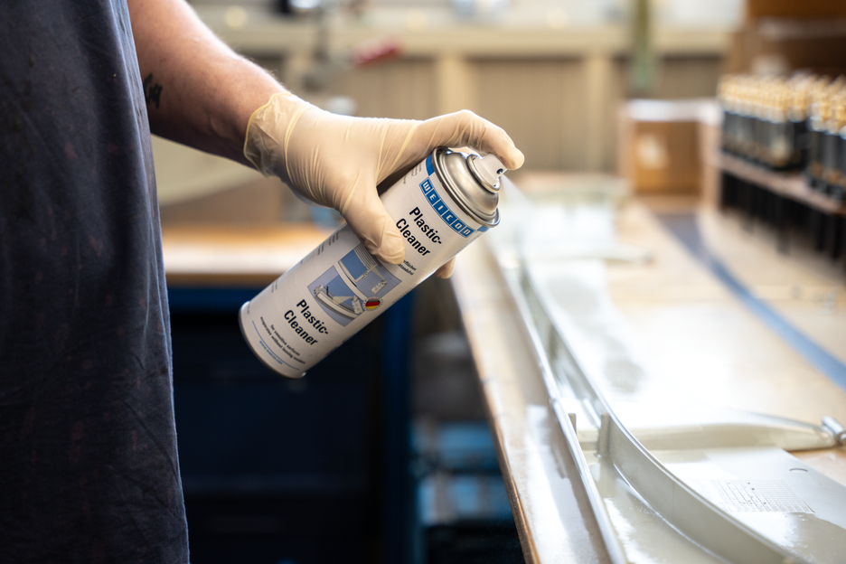 WEICON Detergente per Plastica pulisce, sgrassa ed evapora senza lasciare residui. Va usato per pulire e sgrassare superfici delicate come plastiche, materiali in gomma o parti di metallo verniciate a polvere. WEICON Detergente per Plastica può essere applicato su telai di finestre, tapparelle, profili in plastica, guarnizioni o superfici verniciate in tanti settori dell’industria.