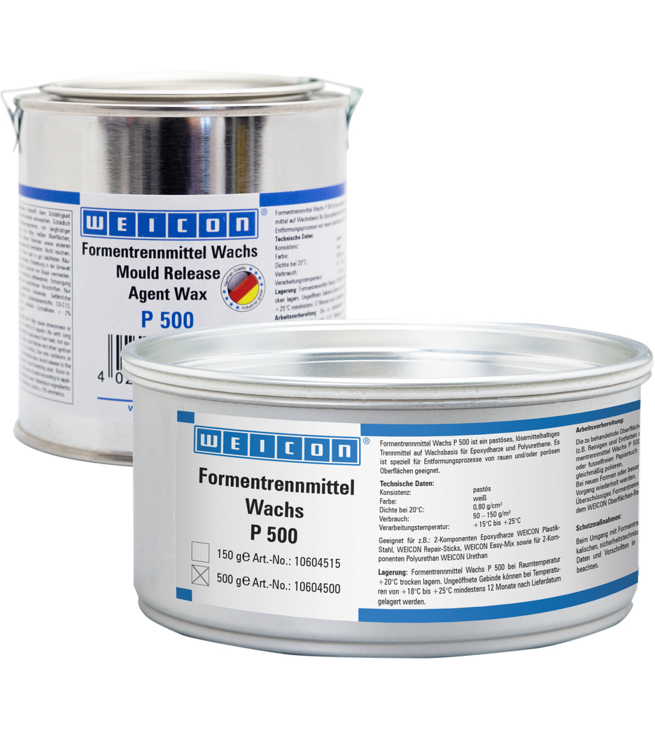P 500 è un distaccante a base di cera per resine epossidiche e poliuretani. È particolarmente idoneo per processi di sformatura da superfici ruvide e/o porose.