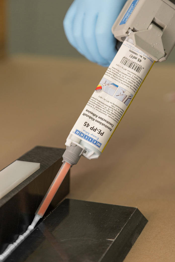 WEICON Easy-Mix PE-PP 45 è un a colla strutturale bicomponente a base di metilacrilato. È particolarmente adatta per l’incollaggio strutturale ad alta resistenza su plastiche a bassa energia quali PE, PP e TPE. Si può rinunciare al pretrattamento, poiché il "primer integrato" nella colla attiva la superficie e permette un incollaggio altamente resistente. Per la lavorazione di prodotti Easy-Mix in 50 ml è necessario utilizzare il Dosatore manuale Easy-Mix D 50.