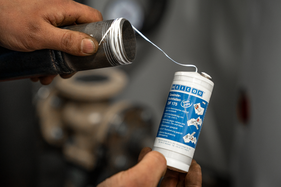 WEICON DF 175 è un filo guarnizione per giunzioni filettate, brevettato al 100% in PTFE. Sigilla filetti in metallo e plastica a lunga durata. WEICON DF 175 riempie le applanarità tra le filettature e forma uno strato di PTFE di dimensione adatta durante l’avvitamento. Questo strato comporta un’alta resistenza a quasi tutti gli agenti chimici, persino contro i solventi, gli alcalini e gli acidi più aggressivi. WEICON DF 175 non è infiammabile, ed è affidabile in un intervallo di temperatura compreso tra -200 °C a +240 °C (da -328 a + 464 °F). Mentre in altri materiali sigillanti il tessuto agisce solo come apporto del sigillante stesso, WEICON DF 175 è al 100% solo materiale sigillante. La separazione del materiale del supporto e del sigillante oltre la durata dell’avvitamento è quindi esclusa. WEICON DF 175 ha una longevità illimitata e rimane sempre morbido e flessibile. WEICON DF 175 è molto economico: Con un rottolo si possono sostituire 20 rottoli di filo in PTFE (12 mm x 0,1 mm x 12 mm).