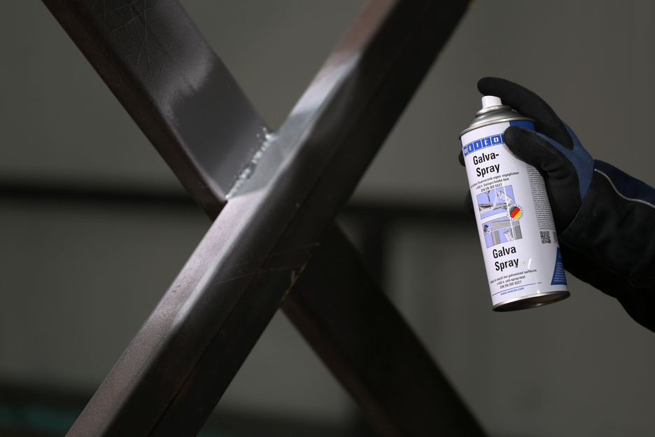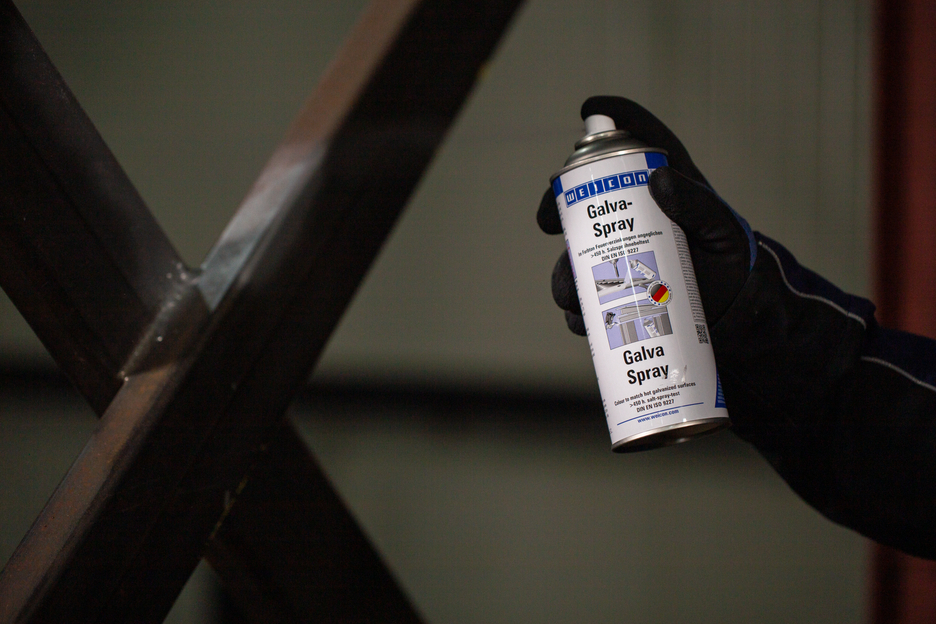 WEICON Galva-Spray serve come rivestimento protettivo durevole per tutte le superfici metalliche. Protegge i metalli contro ruggine e corrosione, è a rapida essiccazione e possiede elevata qualità di aderenza. Lo spray è resistente all’acqua dolce e salata, termostabile fino a ca. +300 °C (+572 °F). Parti metalliche protette con WEICON Galva-Spray hanno superato le 450 ore di prova in nebbia salina (DIN EN ISO 9227) senza alcun segno di corrosione. Lo spray serve per ritoccare zincature danneggiate mantenendo un tono di colore simile, come primer antiruggine di alta qualità (p.es. per verniciature di carrozzerie), come trattamento di parti forate e saldate e come strato conduttore intermedio durante la saldatura a punti.