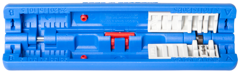The stripping tool Fibre Optic Tube No. 2 has been specially designed for quick access to the optical fibres in loose tubes in buffer tubes from 1.2 mm to 4 mm diameter. It is suitable for a wall thickness of 0.15 mm to 0.6 mm. With the knife in the module and a special insertion point, the buffer tube can be conveniently put through the handy tool. This gives the user fast and process-safe access to the optical fibre in no time at all. The knife in the stripping tool easily cuts the buffer tube (e.g. made of PE) and the user can simply bend the tube without damaging the sensitive glass fibre. If necessary, the insertion point and the knife in the half-shells can be replaced or renewed as modules.