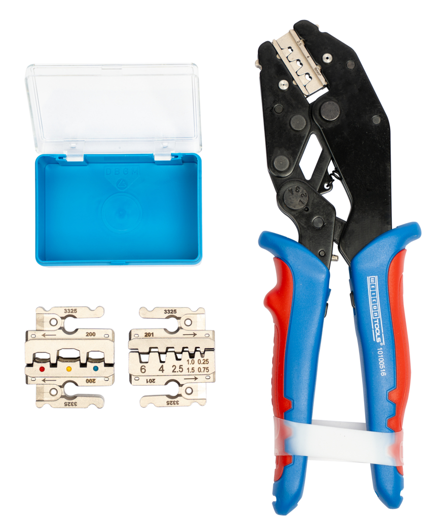 Lavoro preciso grazie al meccanismo a cricchetto con dispositivo di bloccaggio. Crimpatura sicura: l’utensile si apre solo al termine del processo. Sblocco d’emergenza nell’impugnatura in caso di uso improprio. Set da 3 moduli per connettori MC4, puntalini isolati e occhielli isolati. Sistema modulare Multi Change per rapide sostituzioni dei moduli. Regolazione eccentrica per adattare la forza di crimpatura. Impugnature bimateriale per una presa comoda e sicura.