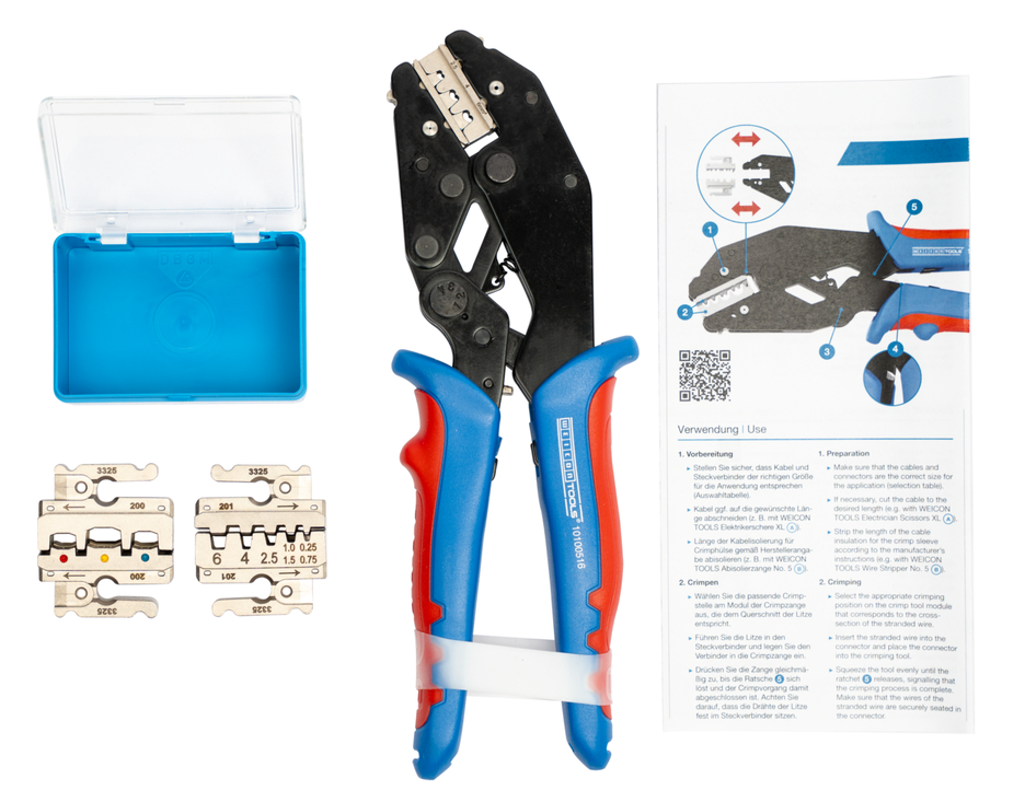 Ik gebruik de Weicon Krimptang ERGO nu een paar weken en ik ben er echt enthousiast over. De ergonomische vorm en de grip met de twee componenten zorgen voor een geweldige haptiek en comfortabel gebruik, zelfs tijdens langere klussen. Het crimpen zelf gaat fantastisch! Dankzij het ratelmechanisme met dwangssluiting krijg je keer op keer een hoge crimpkwaliteit, wat mij veel vertrouwen geeft in mijn werk. Ook de instelbare crimpkracht is een groot pluspunt; het maakt het mogelijk om elke toepassing precies aan te passen. Het multi-change systeem om de crimpmodules snel te verwisselen is ontzettend handig en bespaart tijd. En met de bijgeleverde opbergbox blijven de modules netjes en stofvrij.