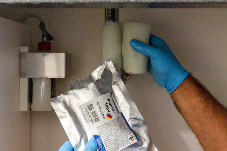 Nastro flessibile, resistente agli urti e autosaldatore per riparazione in plastica rinforzata con fibra di vetro adatto a veloci riparazioni d’emergenza in ambiente interno ed esterno. Il nastro per riparazione è impregnato di una resina speciale e viene attivato tramite il contatto con l'acqua. Si distingue per un'applicazione molto semplice e rapida e dispone di ottime proprietà adesive praticamente su tutti i fondi. Entro 30 minuti il nastro catalizza completamente ed è caricabile. Dopo la catalizzazione il Tape è levigabile e verniciabile Possiede una elevata termostabilità e resistenza chimica da -50 °C /(-58 °F) per breve tempo fino a +150 °C (302 °F). Il Tape può essere lavorato senza utensili aggiuntivi e serve per la riparazione affidabile e durevole nei settori dell’industria, artigianato, domestico, il campeggio e per il fai-da-te.