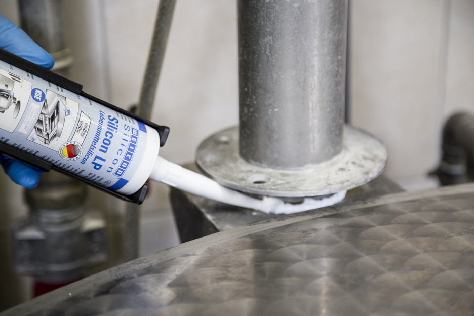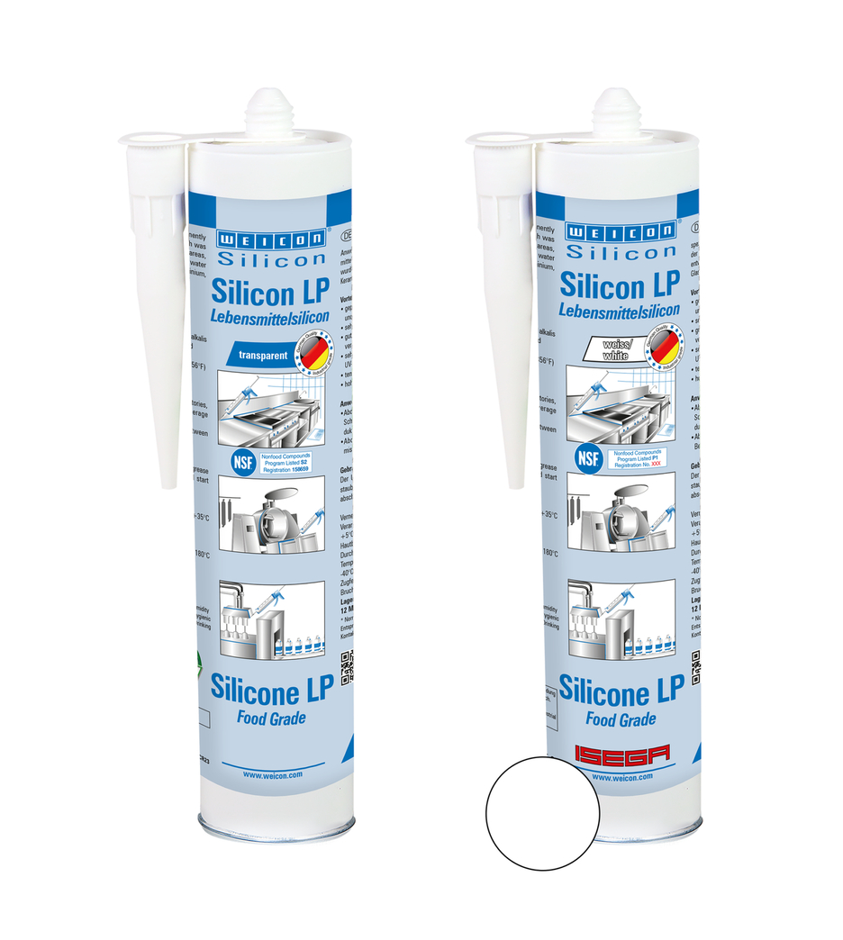 WEICON Silicone LP è un collante e sigillante permanentemente elastico a reticolazione acetica. È resistente contro sostanze chimiche, invecchiamento, agenti atmosferici, raggi UV e dispone di un'alta termostabilità fino a +180 °C (+356 °F). Aderisce in modo ottimale su acciaio, alluminio, vetro, plastiche e tanti altri materiali. Silicone LP è stato sviluppato specialmente per l'impiego in aree sensibili. Serve per sigillature nel settore alimentare e dell'acqua potabile, p. es. in caseifici, macelli, nell'industria alimentare e delle bevande o mense. Testato dall’istituto d’igiene della Ruhr secondo le linee guida KTW dell'ufficio federale tedesco per l'ambiente.
