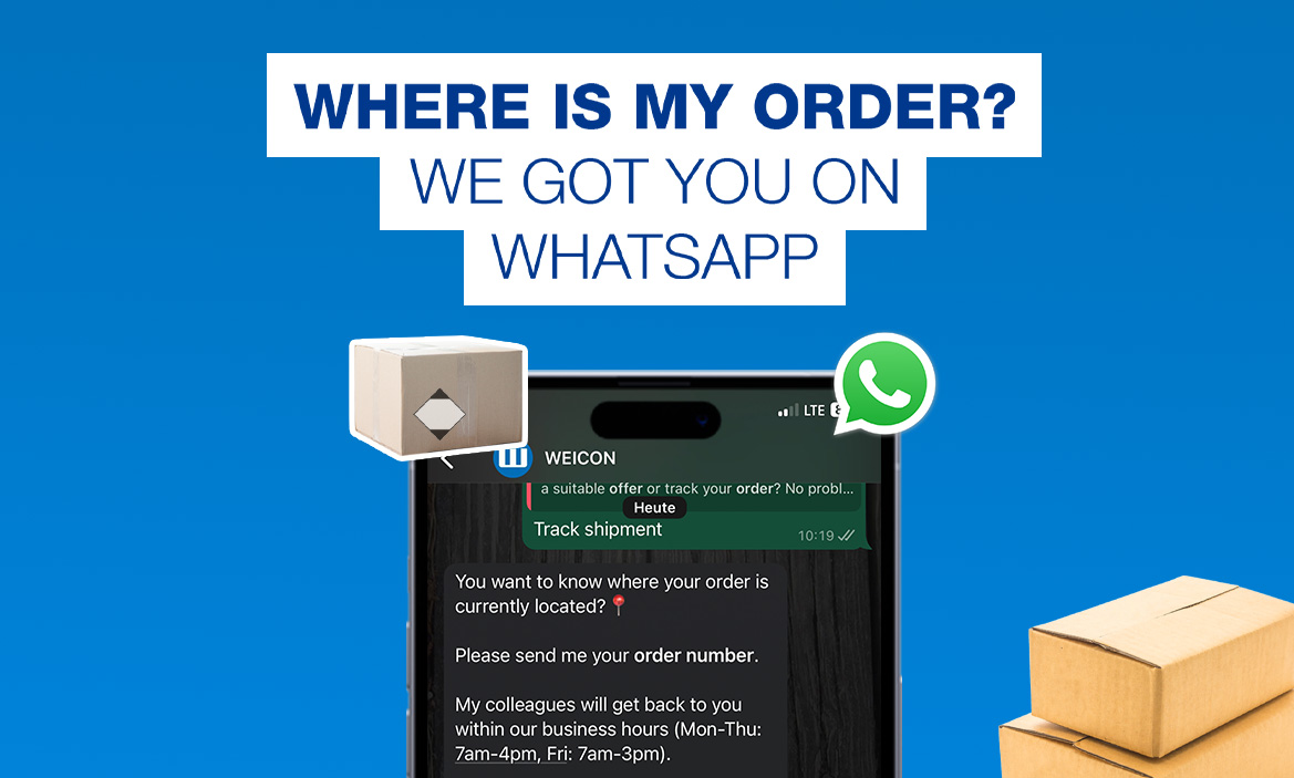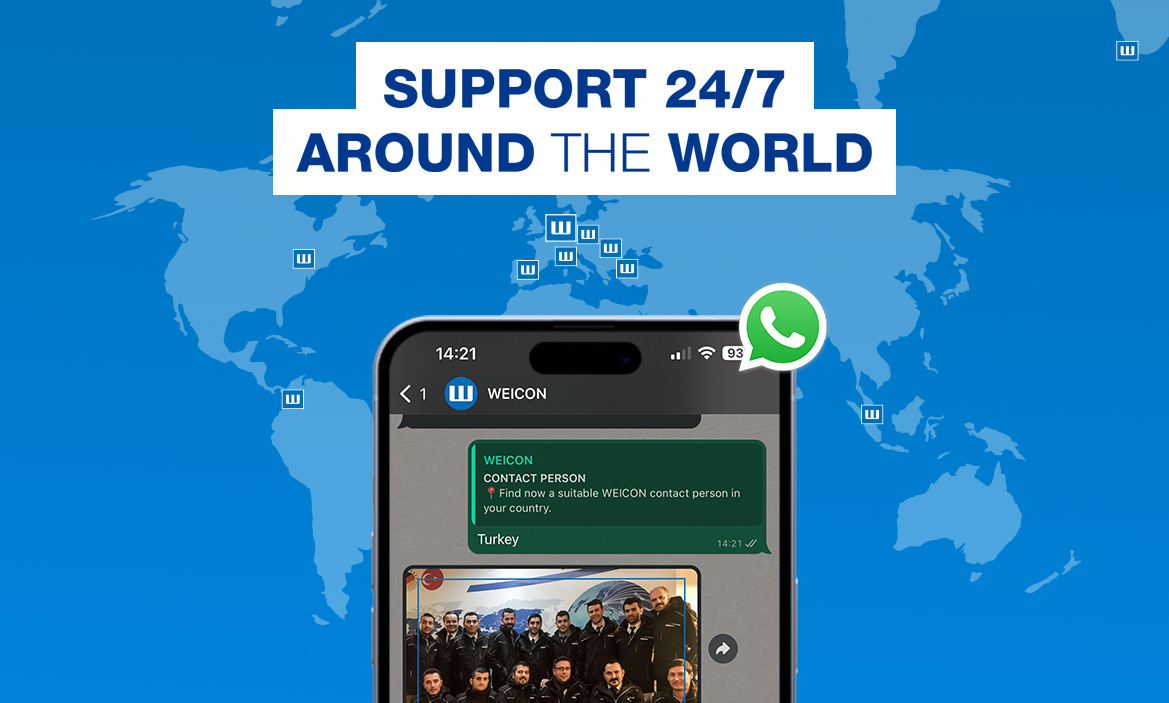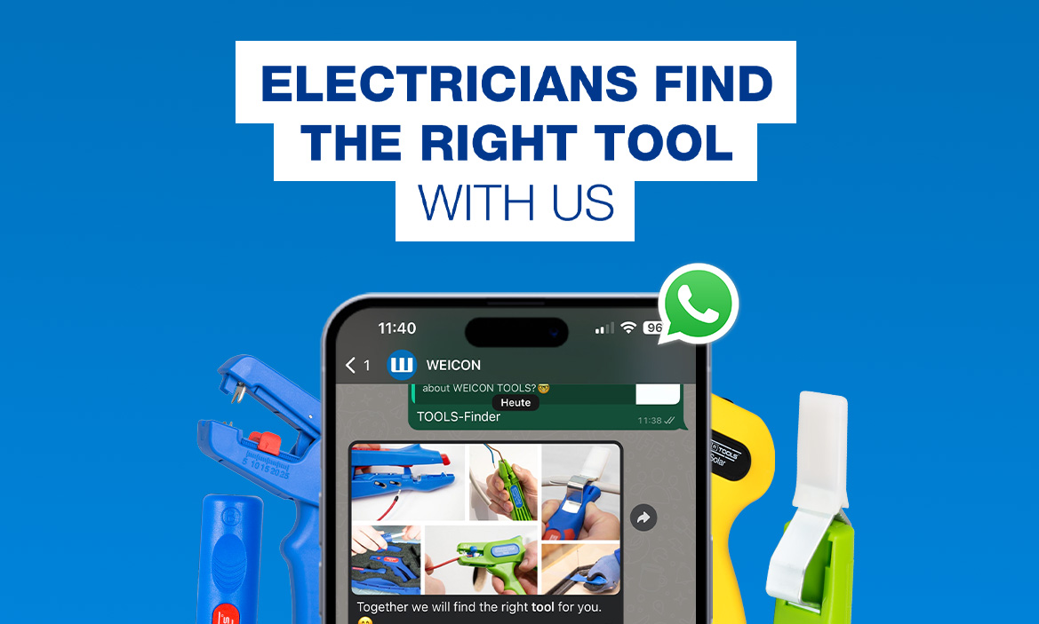 Volete contattarci in qualsiasi momento, ovunque, inviarci le foto della vostra applicazione o utilizzare la funzione Cerca di WEICON TOOLS? Avete domande sui nostri prodotti, state cercando rapidamente la persona giusta da contattare o volete ordinare comodamente via WhatsApp? Abbiamo reso possibile tutto questo per voi! Utilizzate il nostro servizio WhatsApp o iscrivetevi alla nostra newsletter WhatsApp o al nostro nuovo canale WhatsApp.