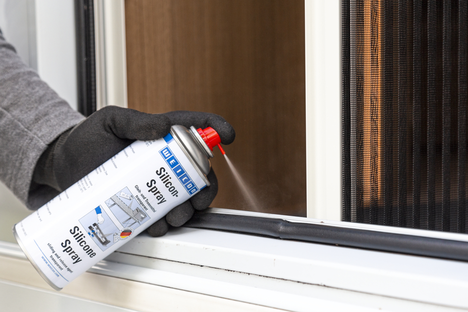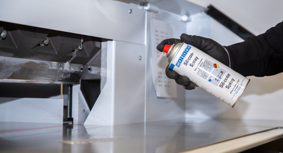 WEICON Silicone Spray è lubrificante e agente di rilascio. Al tempo stesso protegge e cura plastiche, gomme e metalli. Lo spray crea un film distaccante longevo ed una buona finitura superficiale, inoltre è termostabile fino a +250 °C (+482 °F). WEICON Silicone Spray evita l'accumulo di residui adesivi su presse e guide, impedisce ai prodotti di aderire ai nastri trasportatori, agli scivoli ed ai piani di scorrimento, protegge dall’umidità i contatti elettrici, cura parti in gomma, plastica e metallo, previene il deterioramento, il congelamento e l'incollarsi di parti in gomma e consente lo scorrimento facile delle guide dei sedili, dei tettucci delle auto e delle cinture di sicurezza.