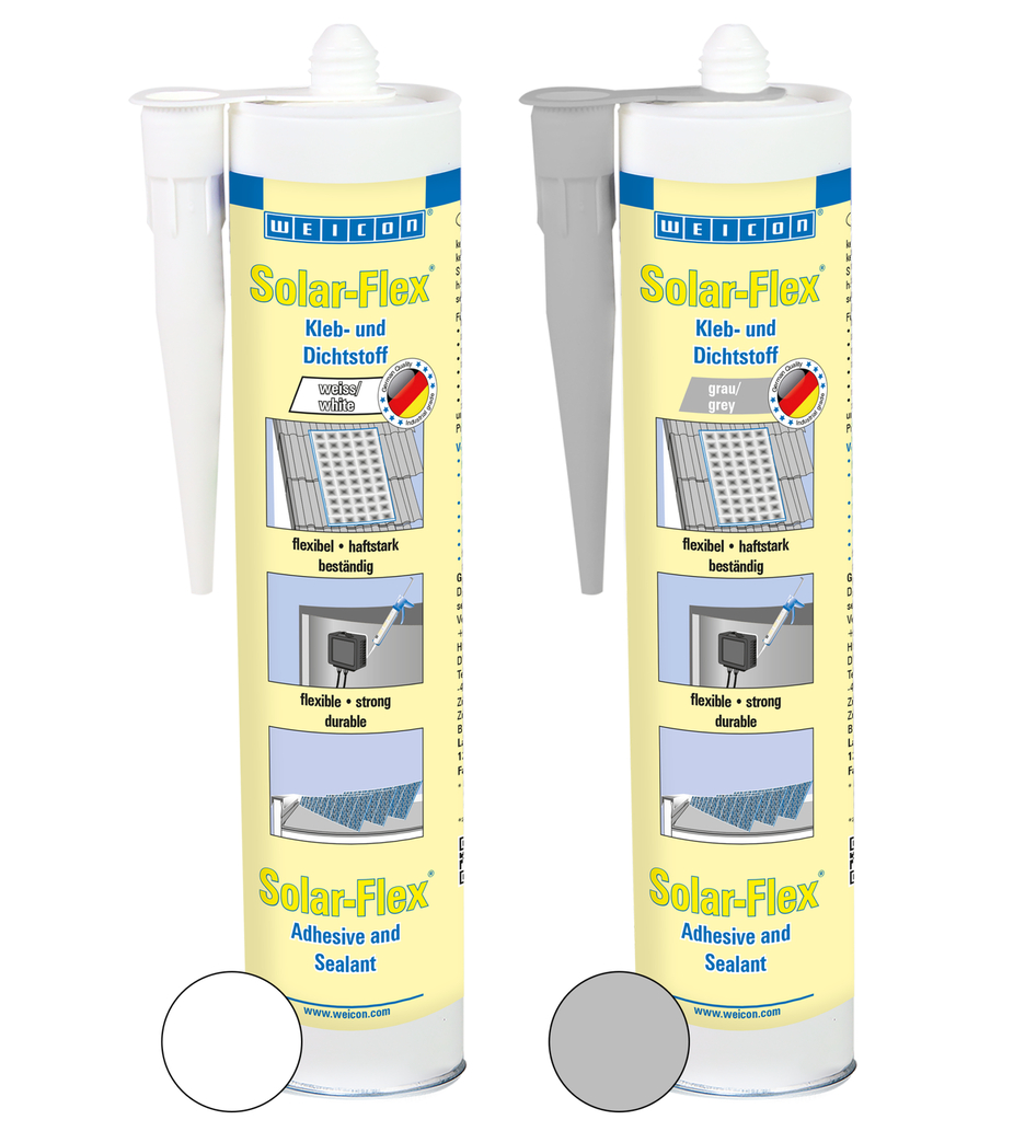WEICON Solar-Flex possiede un’eccellente qualità adesiva, non corrode, è verniciabile bagnato su bagnato, levigabile, resistente agli agenti atmosferici e ai raggi UV ed esente da silicone, isocianati, alogeni e solventi. WEICON Solar-Flex è una colla elastica a base di polimeri MS particolarmente adatta all’industria del solare. L’alta adesione iniziale a la forte adesività quasi istantanea consente di eseguire incollaggi anche su superfici in verticale. Sostituisce metodi tradizionali di fissaggio durante il montaggio di impianti solari e fotovoltaici.