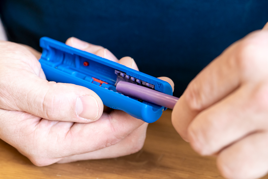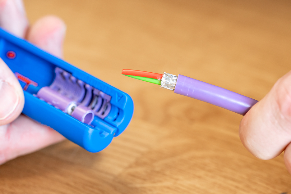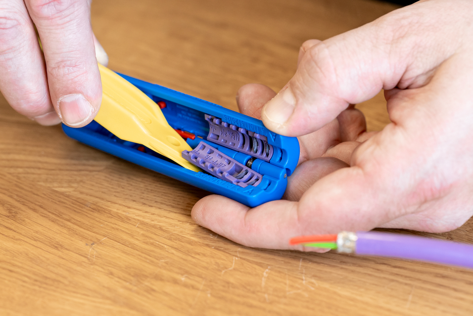 Strumento di spelatura per cavi dati Profibus, ad esempio fili schermati.