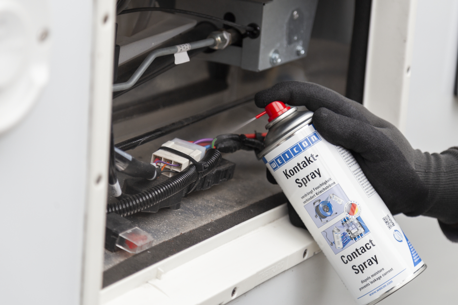 WEICON Spray Contact è a base di una combinazione particolare di sostanze attive per la cura e la protezione di contatti e componenti elettrici. Repelle umidità da contatti elettrici, evita la dispersione di corrente e la perdita di tensione. Previene la formazione di ossido e strati di solfuro su contatti, fusibili, collegamenti elettrici. WEICON Spray Contact si applica p. es. su scatole fusibili, citofoni, cancelli elettrici, prese elettriche, avvolgicavo e prolunghe, elettroutensili per il giardino e impianti d’illuminazione.