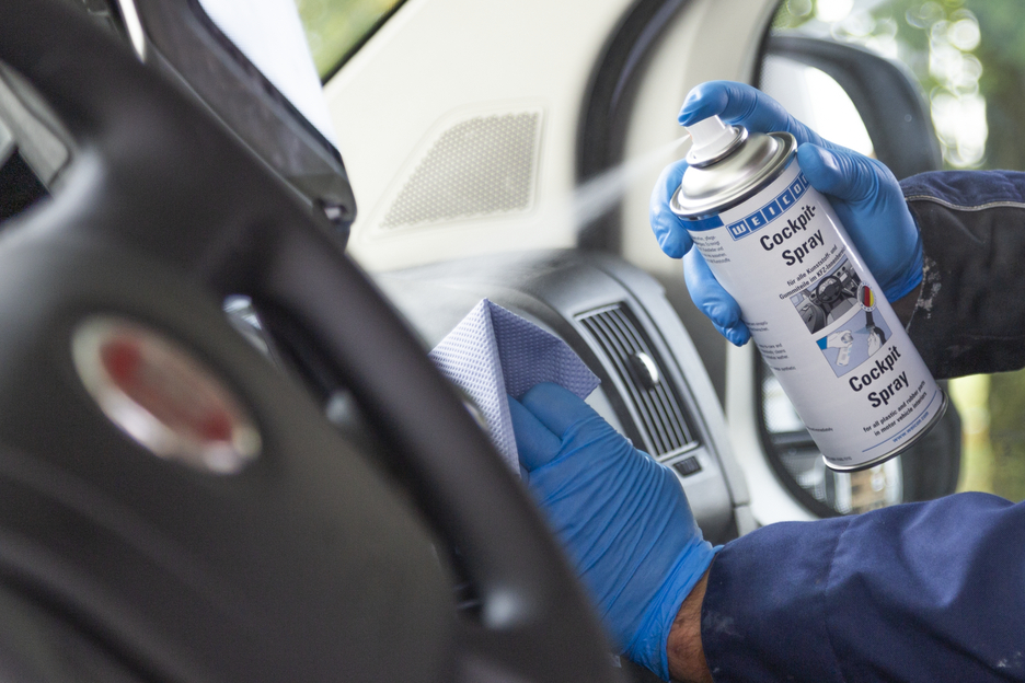 WEICON Spray per Cruscotti è un agente idrorepellente per la cura di tutte le parti in plastica, gomma e superfici in legno verniciate nel settore automobilistico. La pellicola protettiva invisibile evita la penetrazione dello sporco e dona una lucentezza facile da pulire e repellente alla polvere. Lo Spray per cruscotti rinfresca le plastiche opache e corrose dagli agenti atmosferici, la gomma non si screpola e rimane morbida ed elastica. WEICON Spray per Cruscotti elimina cigolii e scricchiolii, cura cruscotti, interni auto, tutte le parti in plastica e gomma, cuoio, legno e cromo. Inoltre cura anche tettucci di macchine rivestiti di cuoio sintetico ed evita che le guarnizioni delle porte, dei finestrini e del portabagagli si ghiacciano. Va usato come lubrificante per le cinture, le guide dei sedili, i tettucci apribili, le guide dei finestrini, le serrature delle porte e dove grassi potrebbero lasciare sporco e residui.
