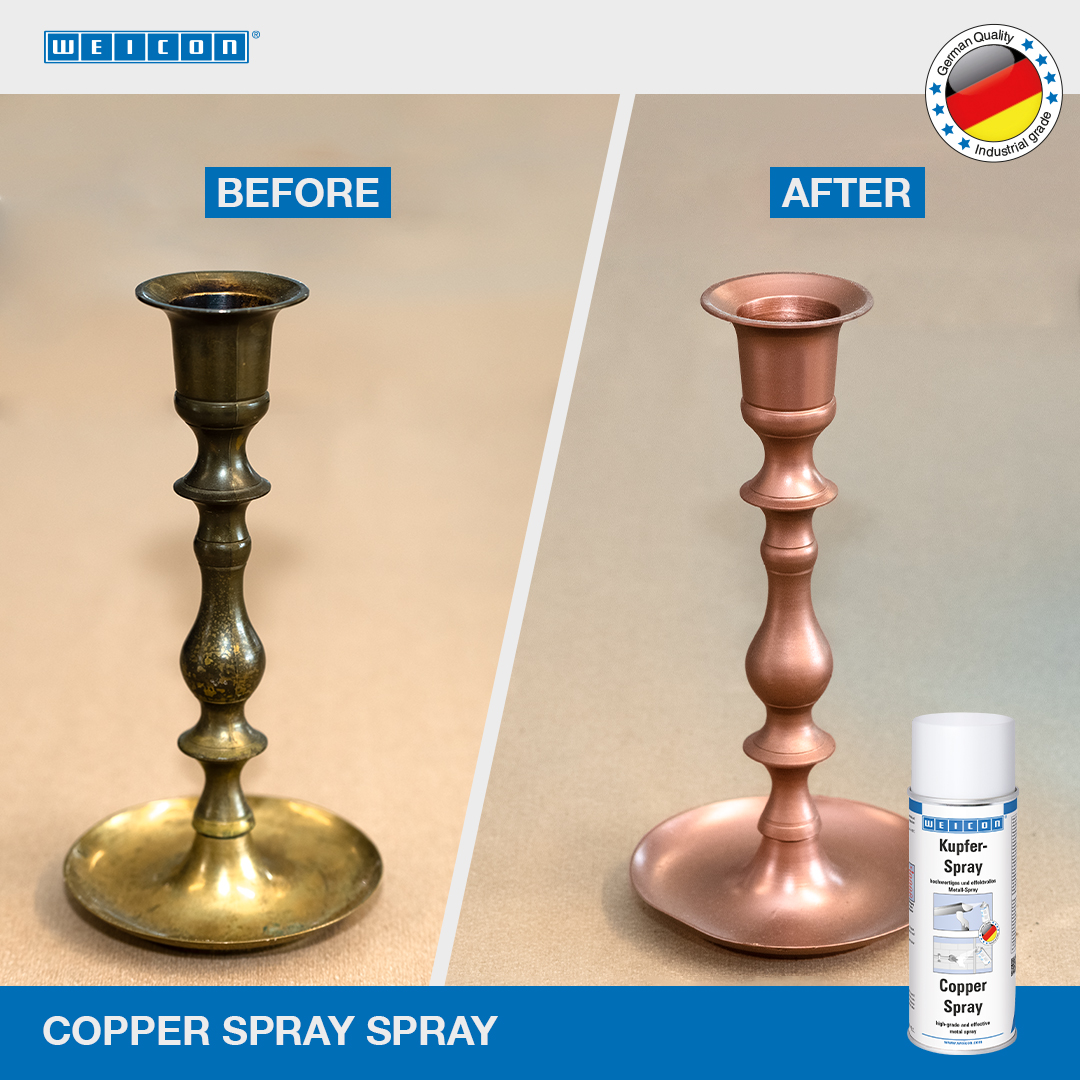 WEICON Spray Rame è uno spray metallico di alta qualità, che è resistente agli agenti atmosferici e dispone di un’alta forza adesiva. Ha una percentuale di rame molto elevata e va usato per rivestimenti protettivi e decorativi sia per interni che per esterni. Idoneo anche per la finitura estetica (ramatura) di superfici di diversi materiali o componentistica. WEICON Spray Rame può essere utilizzato su davanzali di finestre in metallo, su grondaie e tubi, su lampioni e cassette della posta e per lavori di artigianato e decorazioni.