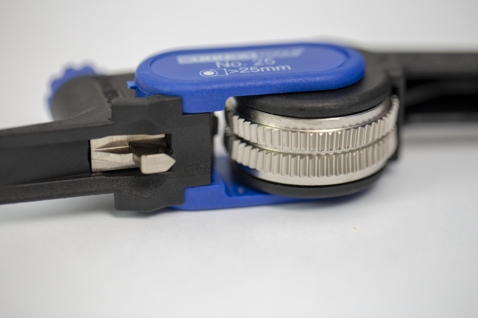 Lavoro sicuro grazie alla lama incassata Protezione dei conduttori grazie alla punta della lama ricurva Lavoro facilitato anche a basse temperature Lama precisa, resistente ed intercambiabile
