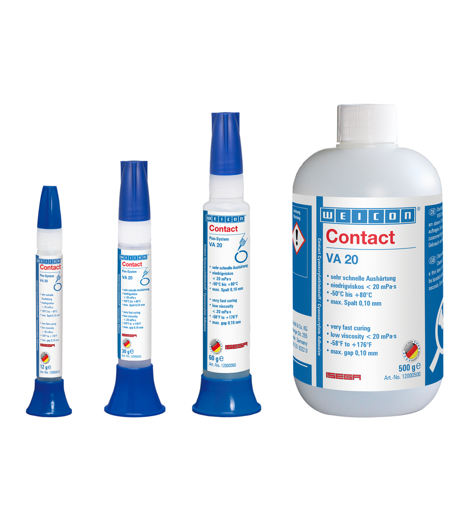 WEICON Contact VA 20 è adatto per incollare gomme e plastiche e per incollaggi di precisione su composti in metallo/plastica. Contact VA 20 trova utilizzo in tanti settori industriali.