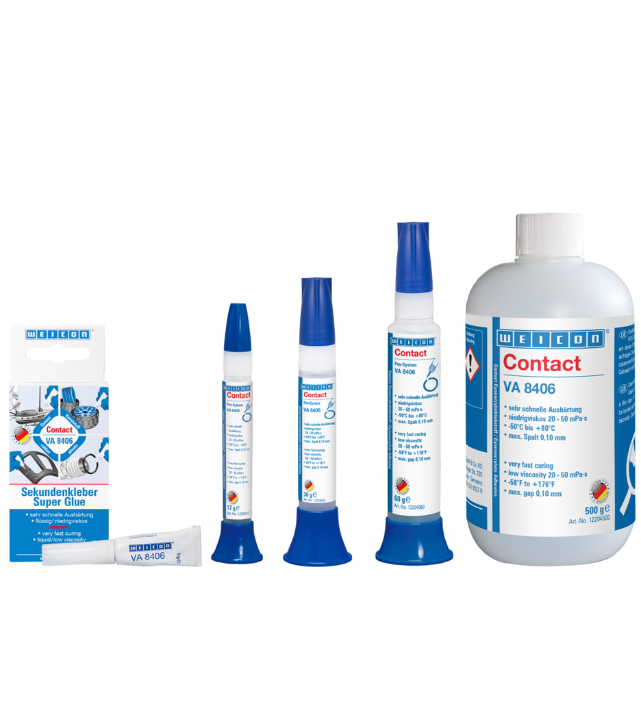 Adesivo cianoacrilico per gomma e plastica | Certificato ISEGA | bassa viscosità | indurimento molto rapido