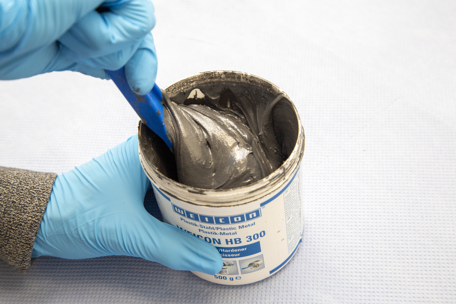 WEICON HB 300 è pastoso, caricato con acciaio, resistente a temperature fino a +200 °C (392 °F) (per brevi periodi fino a +280 °C/536 °F) e va utilizzato con un rapporto di miscelazione di 1:1. Il sistema a base di resine epossidica può essere applicato anche su superfici in verticale. È adatto per riparazioni e incollaggio su pressofusi e parti in metallo, per riempire cavità, riparazione di danni su contenitori, carrozzerie e parti di macchinari e per sigillare pompe e tubi. Il prodotto trova utilizzo nella costruzione di macchinari, impianti, apparecchiature e in tanti altri settori dell’industria.