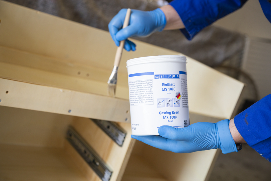 WEICON Resina MS 1000 è un sistema di resina epossidica trasparente e molto fluido con alta forza meccanica. È adatto a un’ampia gamma di utilizzo. MS 1000 aderisce bene su metallo, legno, espansi rigidi e molte plastiche. Può essere utilizzato per l'incollaggio di grandi superfici o per la laminazione di boccole filettate e viti in composito. Grazie alla sua bassa viscosità, il sistema a base di resina epossidica è perfettamente adatto anche per la colatura su componenti elettrici. Trova utilizzo nella costruzione di compositi di fibra, di macchinari, di attrezzature, modelli, nell’industria elettrica, nonché in tanti altri settori industriali. MS 1000 mostra una buona bagnatura e penetrazione in tessuto di vetro ed è quindi adatto per la laminazione di fibre di vetro, di aramide e in carbonio per la produzione di parti rinforzate con fibre. È caricabile con diversi materiali d‘apporto (in forma di polvere, fibre o tessuto).