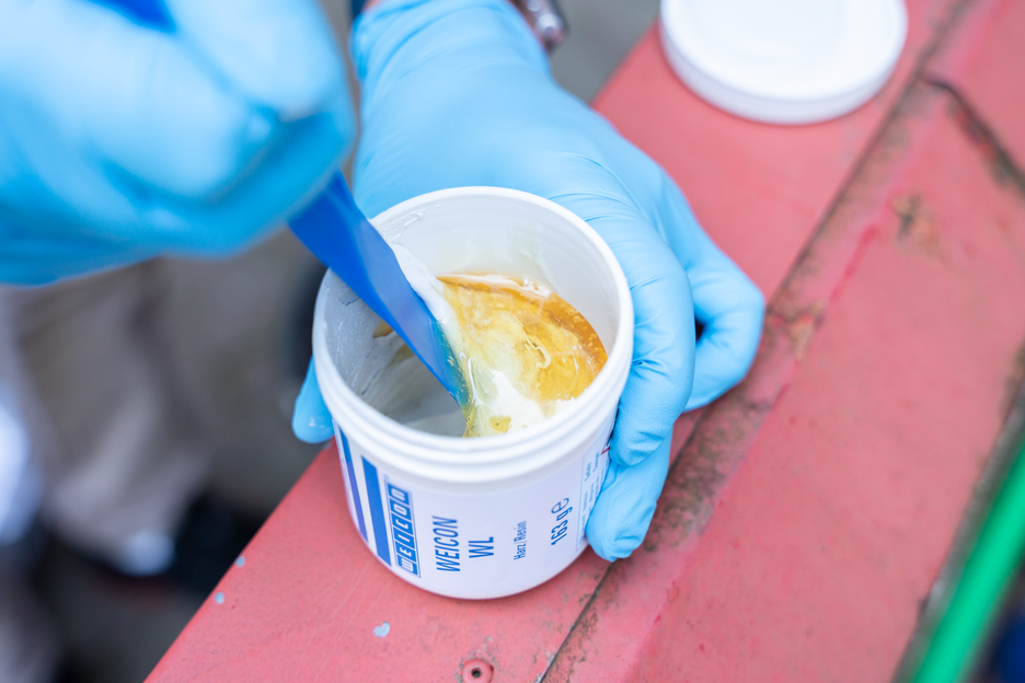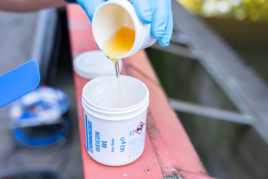 Il sistema di resina epossidica WEICON WL viene utilizzato per rivestire superfici soggette a sollecitazioni. Ha un'elevata forza adesiva, soprattutto sull'acciaio inossidabile. È liquido, spruzzabile, verniciabile (può essere applicato con un pennello), autolivellante, resiliente, riempito di ceramica e resistente agli agenti chimici. Grazie al suo lungo tempo di lavoro, WEICON WL può essere utilizzato per applicazioni con temperature ambiente più elevate o per superfici più ampie. A causa dell'elevata fluidità di WEICON WL, è necessario prestare attenzione a garantire un basso spessore di ogni strato e il relativo tempo di sequenza. WEICON WL è adatto per una struttura di sistema in combinazione con altri tipi di metallo-plastico. Ad esempio, la resina epossidica bicomponente può essere utilizzata come primer per rivestire gli alloggiamenti delle pompe in acciaio inox soggetti a carichi elevati. Il rivestimento superficiale può essere utilizzato nel campo della tecnologia delle acque reflue, per il pompaggio dell'acqua, nell'ingegneria meccanica e impiantistica, nell'ingegneria degli apparecchi e in molti altri settori industriali.